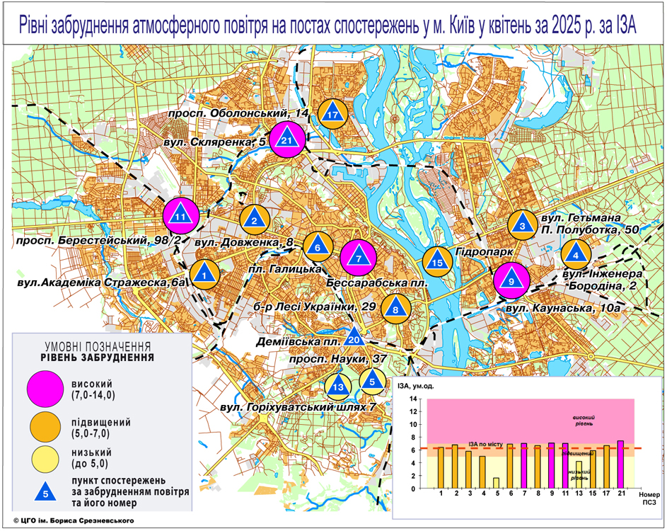 Про стан забруднення атмосферного повітря у м. Києві і Київській області  у квітні 2025 року за даними спостережень