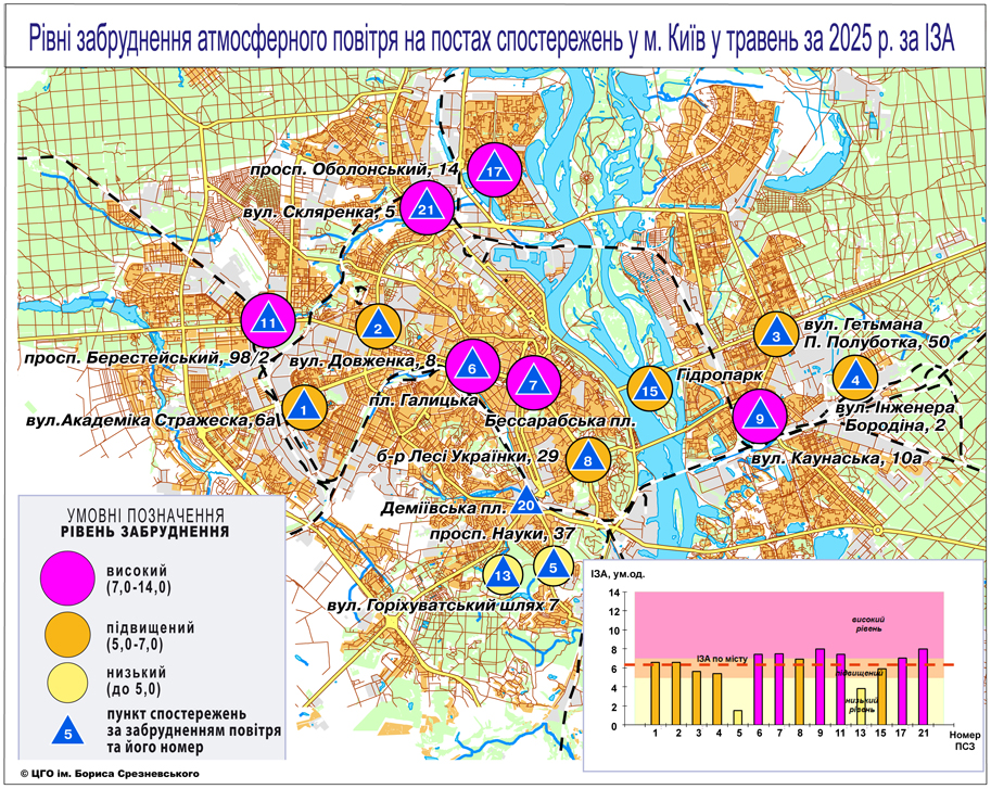 Про стан забруднення атмосферного повітря у м. Києві і Київській області  у травні 2025 року за даними спостережень