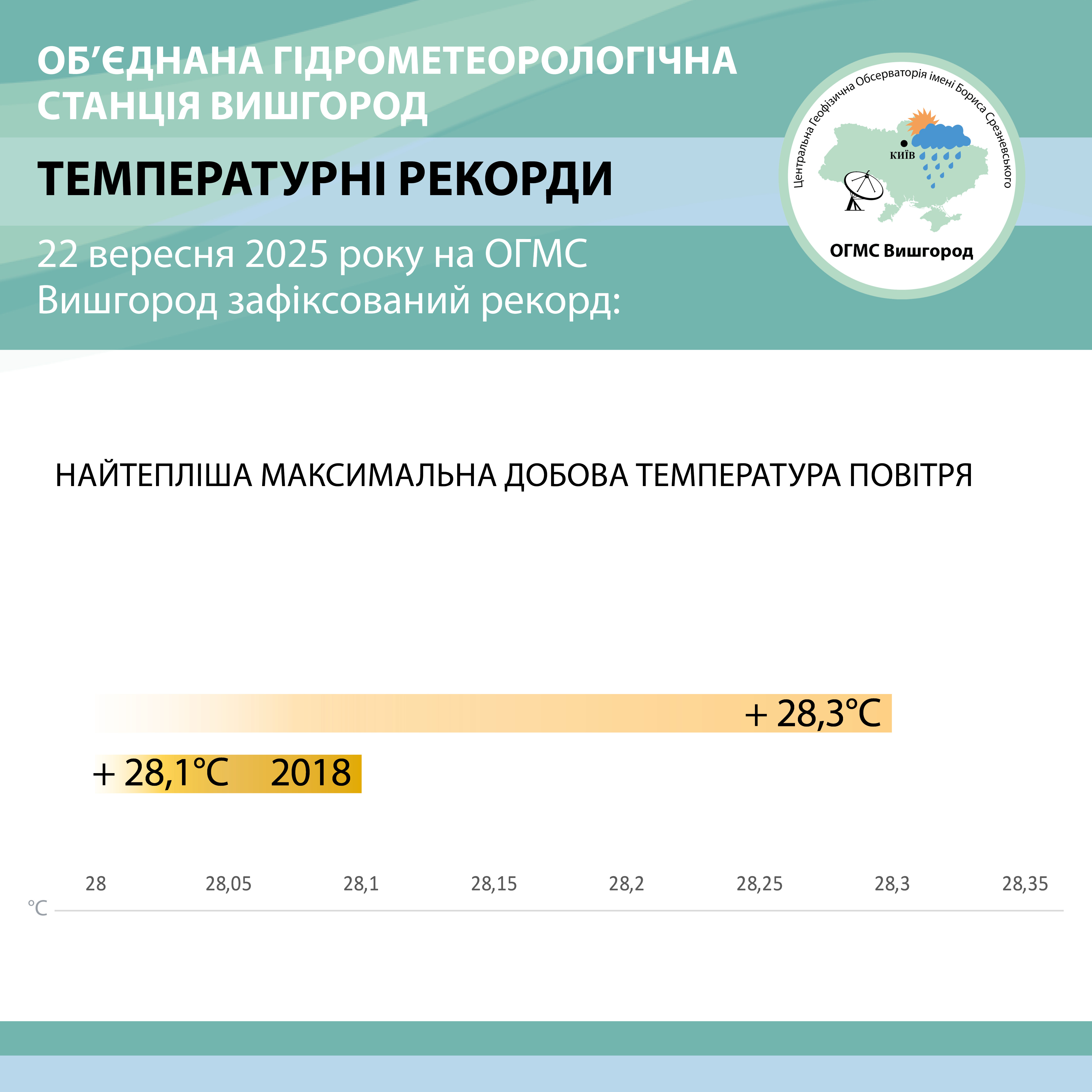 Центральна геофізична обсерваторія імені Бориса Срезневського повідомляє, що за даними спостережень об’єднаної гідрометеорологічної станції Київ 24 вересня до столиці завітала метеорологічна осінь, яка розпочалась на тиждень пізніше за кліматичну норму. Вона характеризується стійким переходом середньодобової температури повітря нижче +15 градусів.