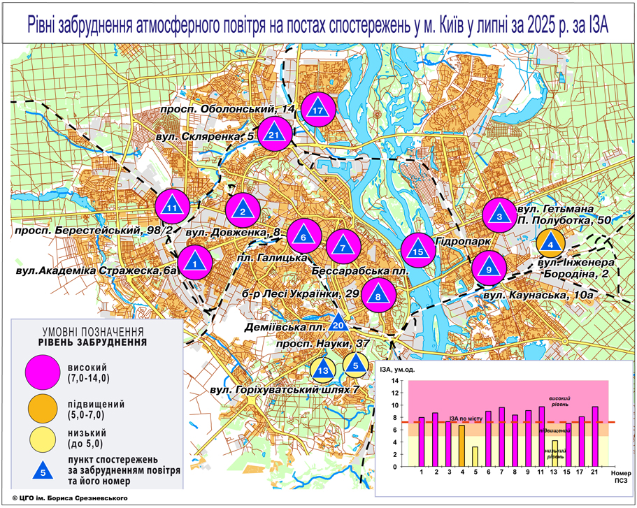 Про стан забруднення атмосферного повітря у м. Києві і Київській області  у липні 2025 року за даними спостережень